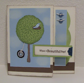 Many new stamps caught my eye in the Spring Idea Book, but this one I knew would be one of the most fun. It's called Trees & Things and that's just what it is. You can create the tree for spring, summer, fall and winter. It has oodles of little fun items to add like this bird and a tire swing. Some other fun images include a hammock, lanterns, string of lights and even a squirrel!